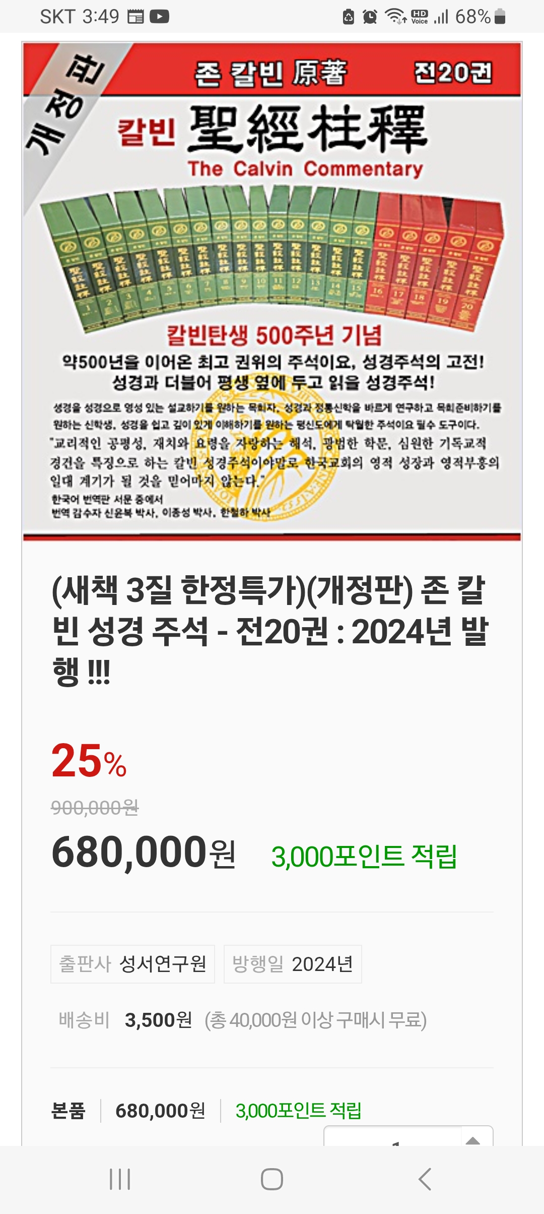 04. (새책) 양장 최신 2024년판 신구약20권 : 정가 900,000원, 판매가 680,000원